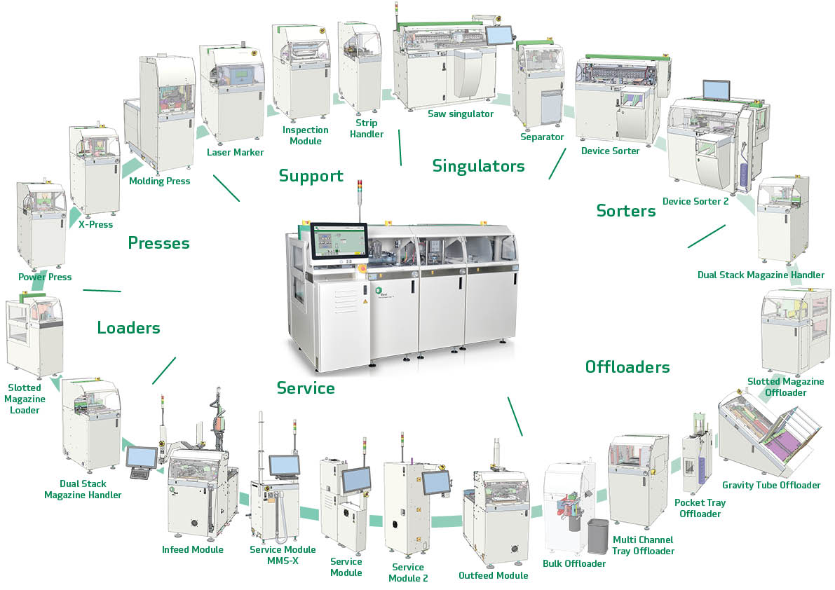 A versatile range of loader and offloader modules is available, including magazine, cassette, tray, bulk, and tube options. Additionally, the FCL-X supports laser marking and comprehensive inspection capabilities, detecting more than 20 types of defects to ensure product quality and traceability throughout the process.