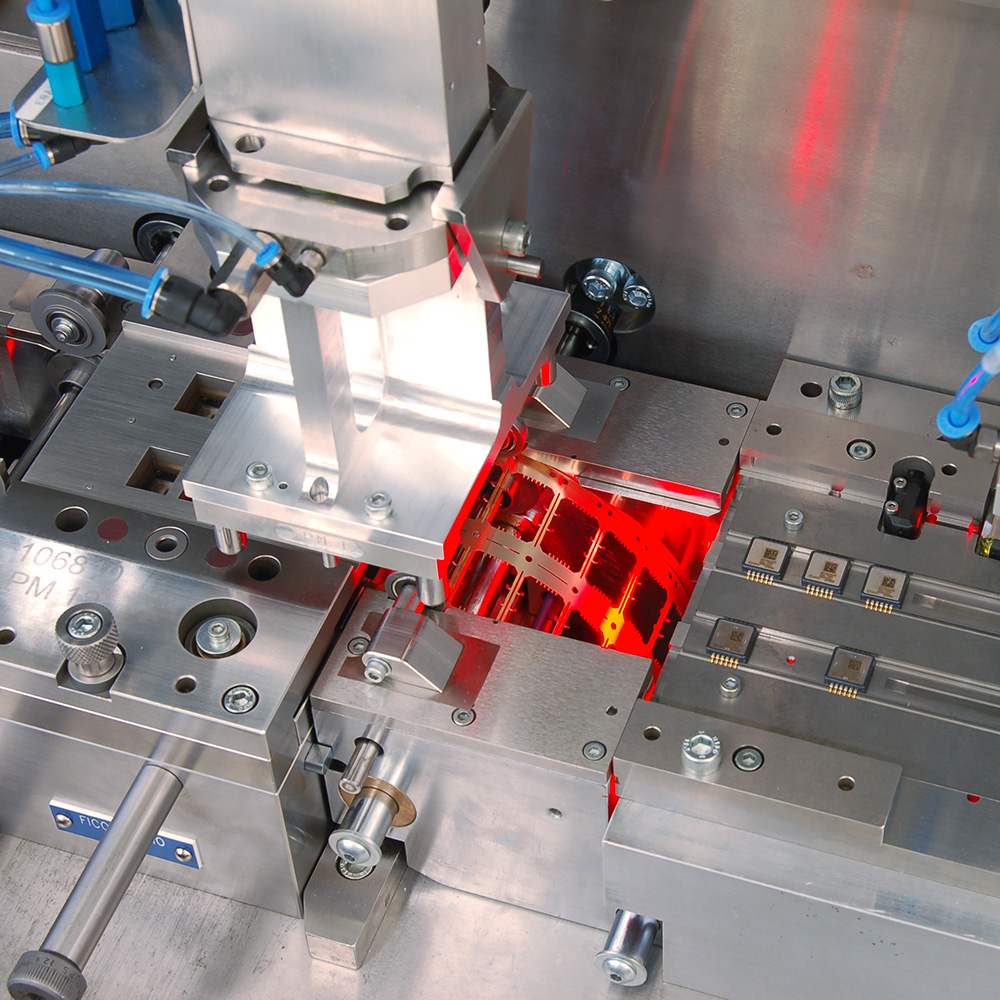 Equipped with a high press force, the FCL-X efficiently handles dense leadframes. Its advanced pollution control system ensures trouble-free processing of preplated and interdigitated strips.